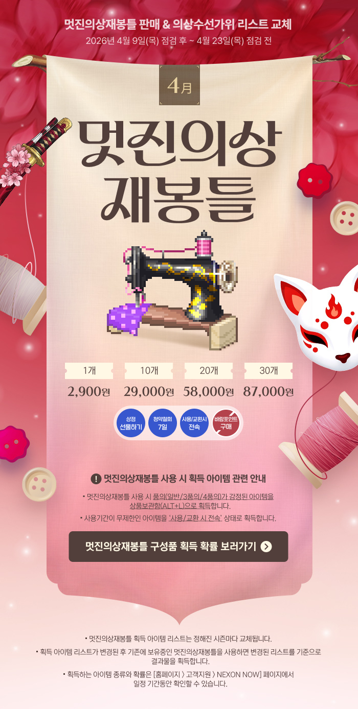 4/2(목) 괴력난신 보상 추가 획득권 판매