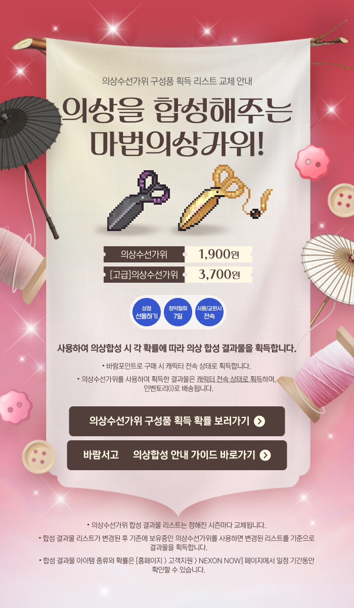 2025년 9월 4일(목) 점검 후부터 빛나는멋진실타래를 정해진 수량만큼 모아서 사용 시 명품의로 교환할 수 있습니다.