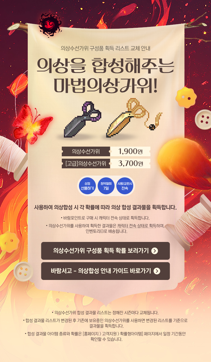명품의는 [고급]의상수선가위 사용 시에는 획득할 수 없습니다.